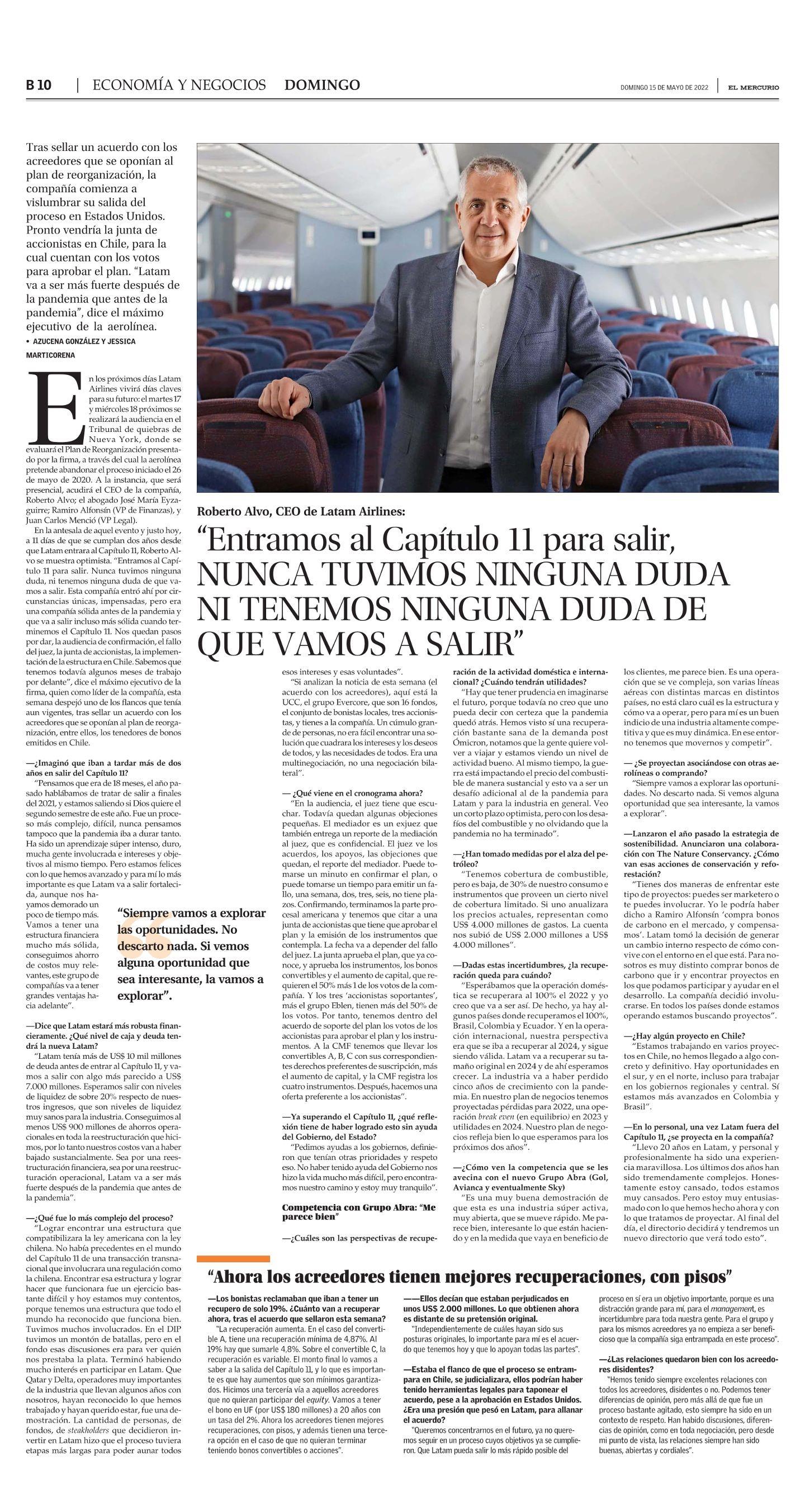 We entered Chapter 11 to exit, we never had any doubt and we don't have any doubt that we are going to exit Maio 15, 2022 Fonte El Mercurio